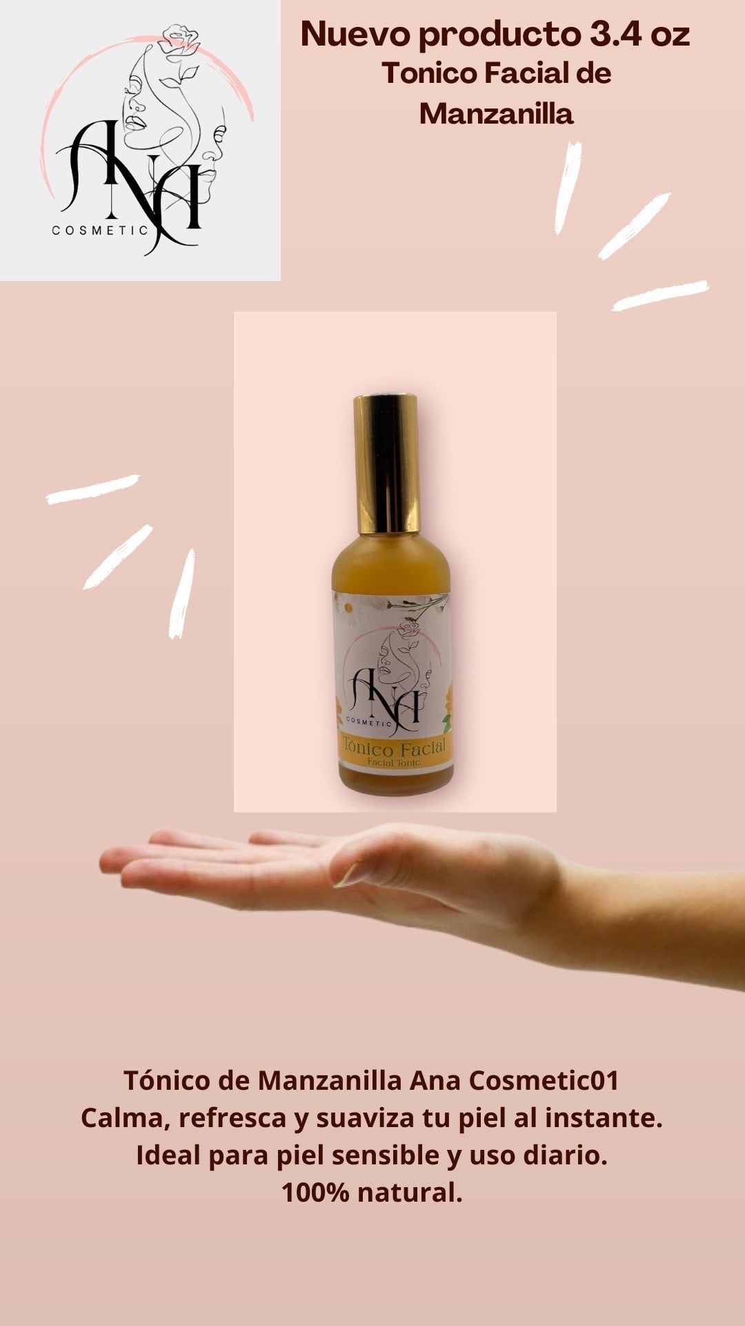 Calma y refresca tu piel con nuestro tónico facial natural de manzanilla. Su fórmula suave, enriquecida con extracto de manzanilla, alivia irritaciones, reduce rojeces y ayuda a equilibrar el pH natural de la piel. Ideal para pieles sensibles o estresadas, hidrata y tonifica, dejando el rostro fresco, suave y radiante. Perfecto para tu rutina diaria de cuidado facial.